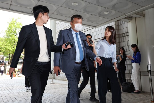 | 배상윤 KH그룹 회장의 '호화 해외도피'를 도운 혐의를 받는 우모 KH 총괄부회장이 26일 오전 서울 서초구 서울중앙지방법원에서 열린 구속 전 피의자 심문(영장실질심사)에 출석하고 있다. (사진=연합뉴스) |