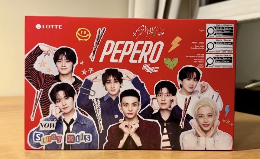 26일 유통업계와 온라인 커뮤니티에 따르면, 최근 캐나다 지역에서 판매를 시작한 롯데웰푸드의 '빼빼로 X 스트레이 키즈' 협업 패키지에서 멤버 '한(본명 한지성)'의 이미지가 통째로 빠진 것으로 확인됐다.