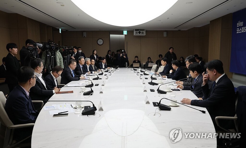 | 11일 서울 중구 대한상공회의소에서 박일준 대한상공회의소 상근부회장, 더불어민주당 권칠승 경제형벌민사책임합리화TF 단장, 오기형 코스피5000특별위원회 위원장 등 참석하에 열린 더불어민주당 코스피5000특위·경제형벌민사책임합리화TF-경제8단체 간담회가 진행되고 있다. (사진= 연합뉴스 제공) |