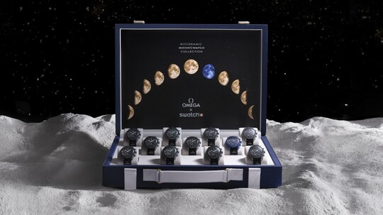 오메가는 지난 2월 12일부터 24일까지 소더비 온라인 경매에서 문스와치 문샤인 골드 11종을 담은 수트 케이스 에디션의 경매를 진행했다.