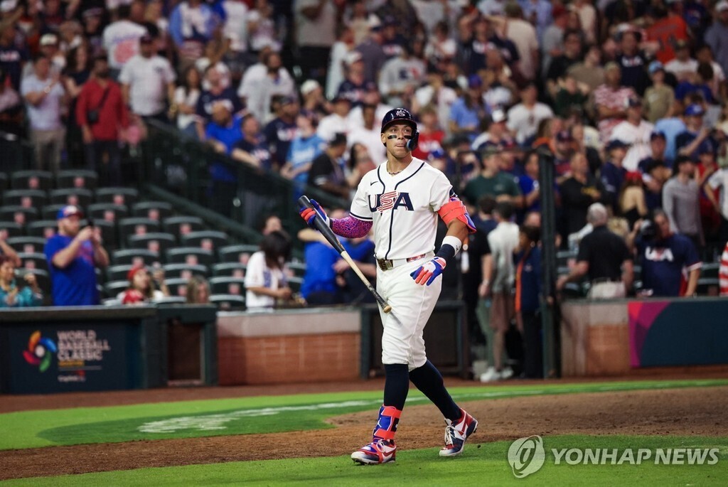 | 사진 = 삼진으로 물러난 미국 대표팀 에런 저지 [Imagn Images=연합뉴스] |