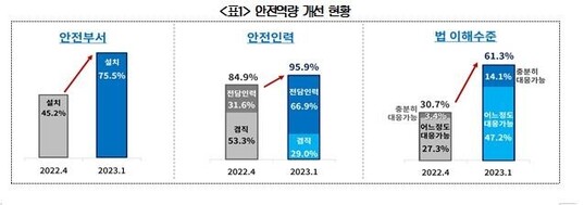 그러나 중소기업은 전문 인력 부족 등 여전히 법 대응에 어려움을 겪는 것으로 나타났다. 처벌보다는 예방지도 정책이 필요하다는 견해가 나왔다.