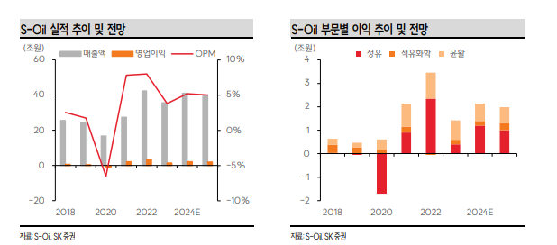 SK증권에 따르면, S-Oil의 올해 1분기 매출액은 9.9조 원으로 전년 대비 8.7% 증가하고, 영업이익은 4968억 원으로 전년 대비 3.7% 감소, 전분기 대비로는 흑자 전환했을 것으로 추정된다. 1분기 유가 강세와 다운스트림 가격 상승에 따른 마진 개선 등 효과에 따라 실적 개선이 가능했을 것이란 평가다.
