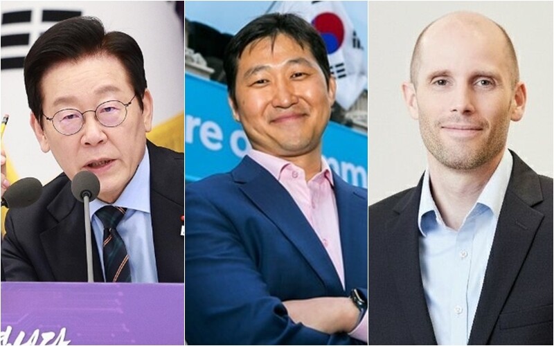 | 좌측부터 이재명 대통령, 김범석 쿠팡 이사회 의장, 해롤드 로저스 쿠팡 신임 대표. (사진=연합뉴스, 쿠팡) |