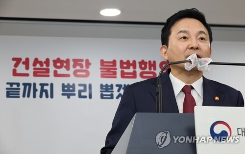21일 원 장관은 정부서울청사에서 열린 '건설현장 불법·부당행위 대책' 브리핑에서 이같이 밝히고 "건설현장 불법을 일단 강도 높게 제재한 뒤 정상적 수요공급 질서를 마련하겠다"고 강조했다.