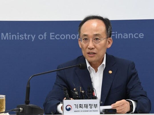 | 추경호 경제부총리 겸 기획재정부 장관이 16일 세종시 정부세종청사 중앙동에서 열린 기자 간담회에서 취재진의 질문에 답변을 하고 있다. (사진=기획재정부) |