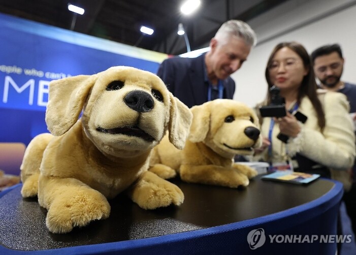 | 4일(현지시간) 미국 네바다주 만달레이베이 컨벤션센터에서 열린 'CES 2026 언베일드'에 반려견 로봇이 전시돼 있다. (사진=연합뉴스) |