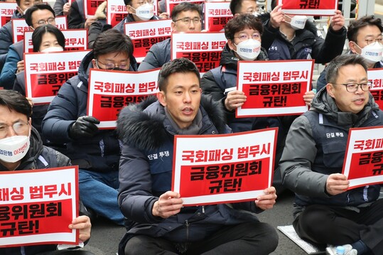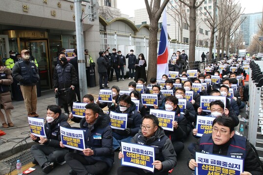 노조는 이날 오전 서울 종로구 정부서울청사 앞에서 금융위가 위법·졸속으로 산은의 부산 이전을 추진하고 있다고 규탄했다. 산은 노조는 “금융위는 오직 정치 논리에만 사로잡혀 어떠한 사회적·경제적 타당성 검토도 없이 산은법을 무시한 채 부산 이전을 무리하게 추진하고 있다”고 비판했다.