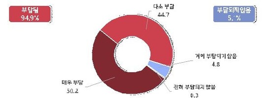 9일 중소기업중앙회에 따르면 지난달 4~27일 309개 제조 중소기업을 상대로 진행한 '에너지 비용 부담 현황 조사' 결과 현재 산업용 전기요금이 부담된다는 응답이 94.9%에 달했다. 50.2%는 매우 부담된다고 답했다.