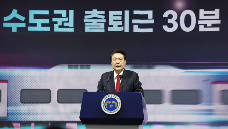 | 윤석열 대통령이 29일 서울 강남구 수서역에서 열린 수도권광역급행철도(GTX) A노선 수서~동탄 구간 개통 기념식에서 기념사를 하고 있다. (사진=연합뉴스) |