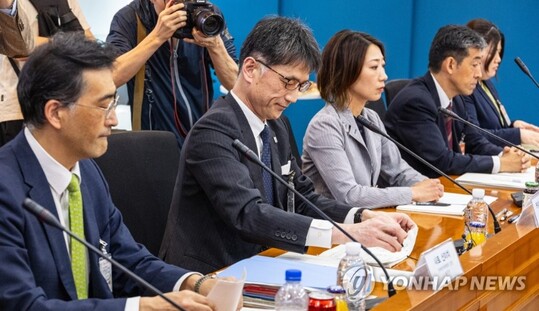 | 12일 오후 서울 종로구 외교부에서 열린 후쿠시마 오염수 현장 시찰 한일 실무협의에서 일본측 카이후 아츠시 군축불확산과장(왼쪽 두번째)이 회담장에 입장해 회의 시작을 기다리고 있다. (사진=연합뉴스) |