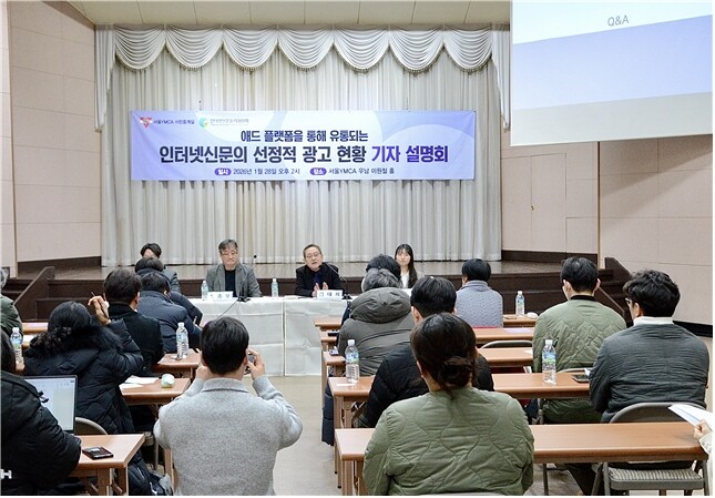 인신윤위와 서울 YMCA는 28일 서울YMCA회관에서 기자설명회를 열고 애드플랫폼을 통해 유통되는 광고의 선정성 실태를 공개하며 광고 플랫폼 사업자의 즉각적인 대응을 촉구했다.