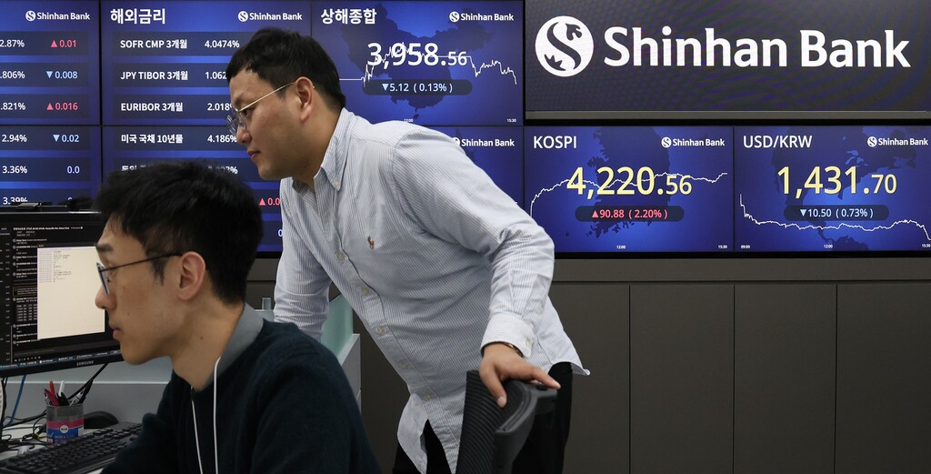 29일 코스피는 전 거래일보다 90.88포인트(2.20%) 오른 4220.56에 장을 마쳤습니다.