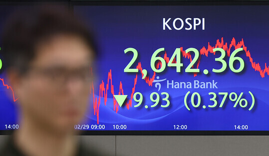 | 29일 오후 서울 중구 하나은행 딜링룸 스크린에 코스피 종가가 표시돼 있다. (사진=연합뉴스) |