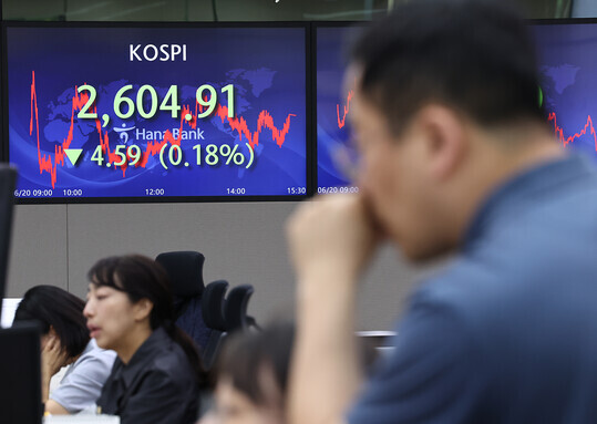 코스피가 전 거래일 대비 4.59포인트(0.18%) 내린 2,604.91로 장을 마감했다. 지수는 전장보다 6.67포인트(0.26%) 내린 2,602.83으로 출발해 장중 2,596.82까지 떨어지며 2600선을 밑돌기도 했으나 오후 들어 하락 폭을 다소 줄였다.