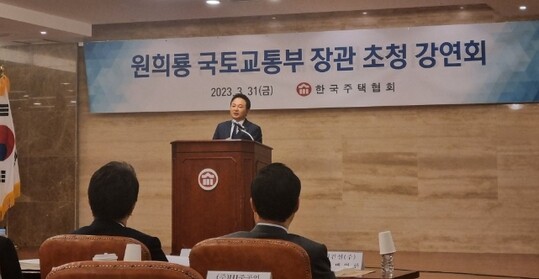 | 원희룡 국토교통부 장관은 31일 서울 강남구 건설회관에서 열린 한국주택협회 정기총회에 참석해 발언하고 있다. (사진=연합뉴스) |