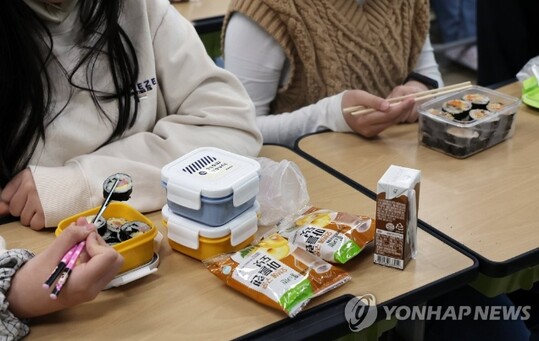 | 학교비정규직연대회의가 총파업에 돌입한 31일, 전북 전주시 덕진구의 한 초등학교에서 학생들이 싸온 도시락을 먹고 있다. 이날 학교는 대체 급식으로 빵과 우유를 제공했다. (사진=연합뉴스) |