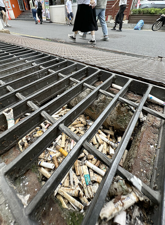 | 23일 서울 강남역 인근 빗물받이에 담배꽁초와 쓰레기가 쌓여 있다. (사진=연합뉴스) |