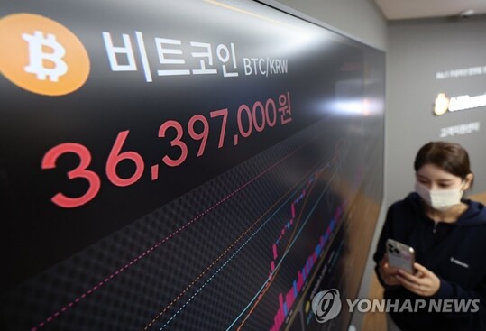| 20일 오후 서울 서초구 빗썸 고객센터 전광판에 비트코인 등 가상화폐 실시간 거래 가격이 표시되고 있다. (사진=연합뉴스) |
