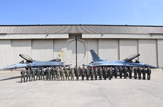 | 한미 연합 공군 전력 운용 장병들과 김승겸 합참의장. (사진=합동참모본부) |