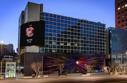 | 국내 애플스토어 5호점 '애플 강남'의 외벽 바리케이드 디자인. (사진=애플) |