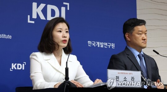 | 천소라 한국개발연구원(KDI) 경제전망실 전망총괄이 11일 오전 세종시 정부세종청사에서 2023년 상반기 KDI 경제전망을 발표하고 있다. 오른쪽은 정규철 경제전망실장. (사진=연합뉴스) |