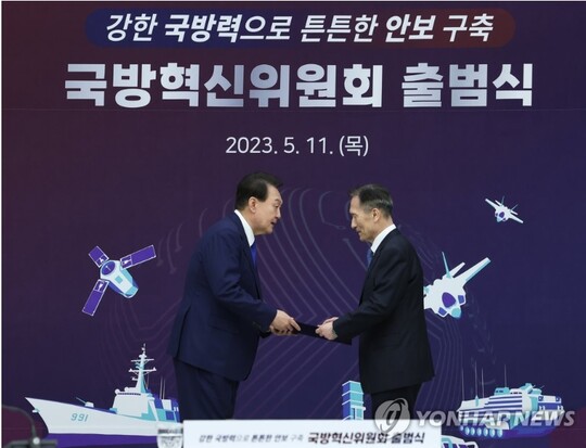 국방부가 추진하는 ‘국방혁신 4.0 기본계획’의 주요 정책 및 과제를 심의 조정하는 국방혁신위원회가 공식 출범했다. 작년 12월 제정된 대통령령에 근거해 신설된 대통령직속위원회로 윤 대통령이 위원장, 김관진 전 국방부 장관이 부위원장을 맡는다.
