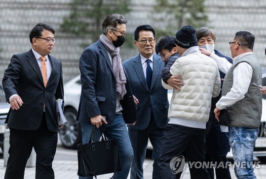 | 서해 공무원 피격 사건을 은폐하려 한 혐의로 기소된 박지원 전 국가정보원장이 24일 서울 서초구 서울중앙지방법원에서 열린 1차 공판에 출석하며 서해 피격 공무원 유족 이래진 씨의 항의를 받고 있다. (사진=연합뉴스) |