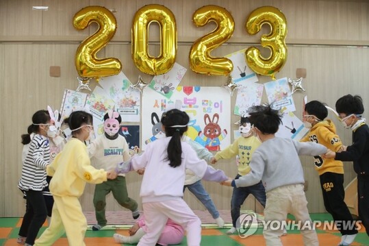 | 지난해 12월 29일 광주 북구청 어린이집에서 아이들이 토끼 가면을 쓰고 놀이를 즐기고 있다. (사진=연합뉴스 자료사진) |