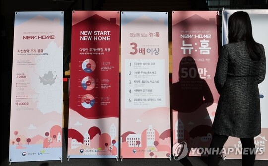 | 시민이 윤석열 정부의 공공분양주택 ‘뉴 홈’ 게시물을 보고 있다. (사진=연합뉴스) |