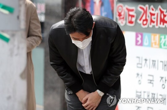 | 전직 대통령 고(故) 전두환 씨의 손자 전우원 씨가 30일 낮 광주 서구 쌍촌동 거리에서 만난 취재진에게 허리숙여 인사하고 있다. (사진=연합뉴스) |