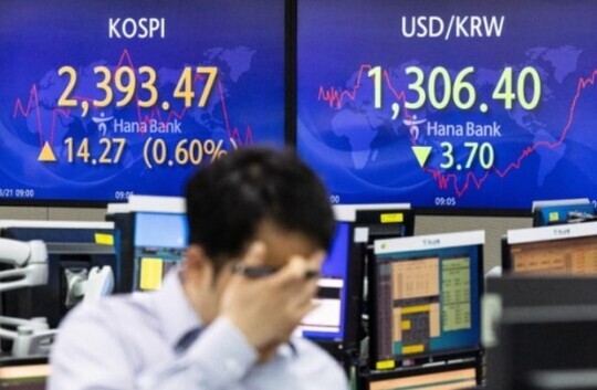 | 21일 코스피는 전일 대비 9.15포인트(0.38%) 상승한 2388.35에 거래를 마쳤다. 이날 오전 서울 중구 하나은행 본점 딜링룸. (사진=연합뉴스) |