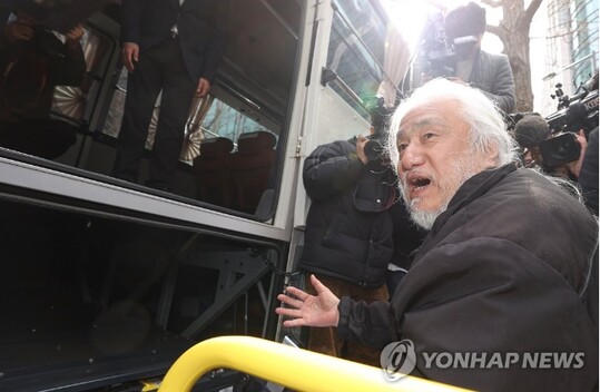 | 박경석 전국장애인차별철폐연대(전장연) 상임공동대표가 17일 오전 서울 종로구 서울경찰청 앞에서 기자회견을 마친 뒤 서울 남대문경찰서로 향하는 호송차량에 탑승하고 있다. (사진=연합뉴스) |