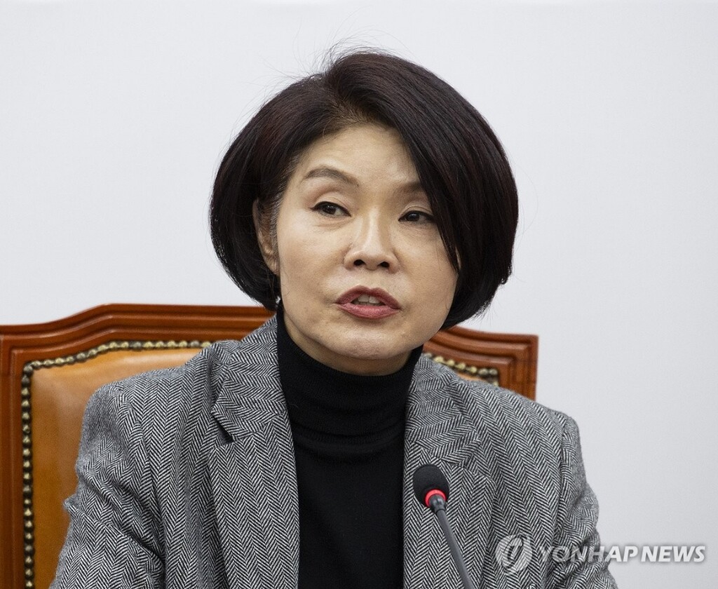 | 더불어민주당 한정애 정책위의장이 10일 국회에서 열린 원내대책회의에서 발언하고 있다. (사진=연합뉴스) |