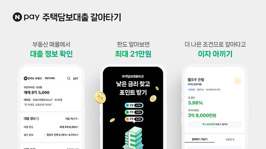 이에 더해 제휴 금융사는 더욱 늘어날 전망이다. 네이버페이 주택담보대출 갈아타기는 현재 신한은행·우리은행·하나은행·NH농협은행·IBK기업은행·SC제일은행 등 업계 최다 수준의 시중은행과 제휴 중이다.