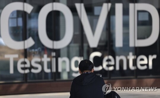 | 인천국제공항 제1여객터미널 코로나 검사센터 앞에 한 시민이 앉아 있다. (사진=연합뉴스 자료사진) |