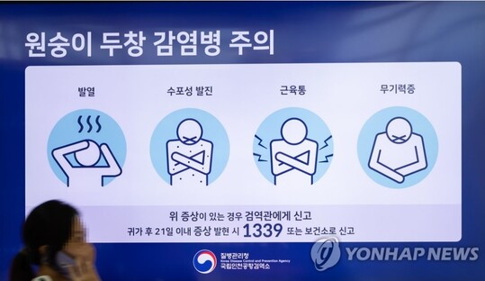 | 작년 9월4일 오후 인천공항 출국장 내 전광판에 엠폭스(원숭이 두창) 감염에 대한 안내가 표시되고 있다. (사진=연합뉴스 자료사진) |