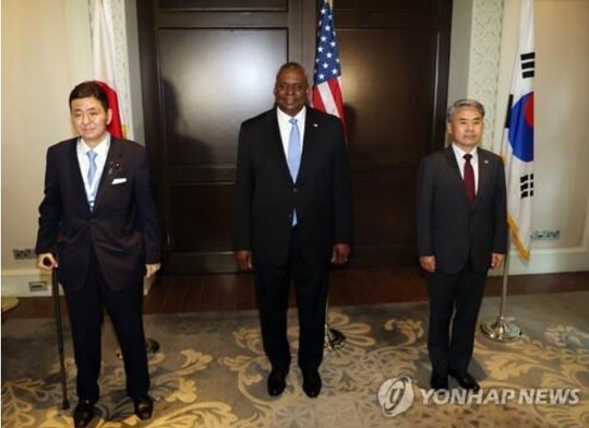 | 지난해 6월 싱가포르서 열린 한미일 국방장관회담. (사진=연합뉴스 자료사진) |