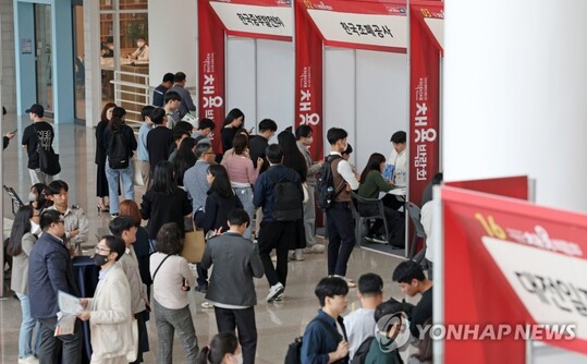 | 2일 오후 대전시 서구 둔산동 대전시청에서 열린 '2023 충청권 공공기관 지역인재 채용 박람회'에서 구직자들이 취업 희망 부스에서 상담받고 있다. (사진=연합뉴스) |