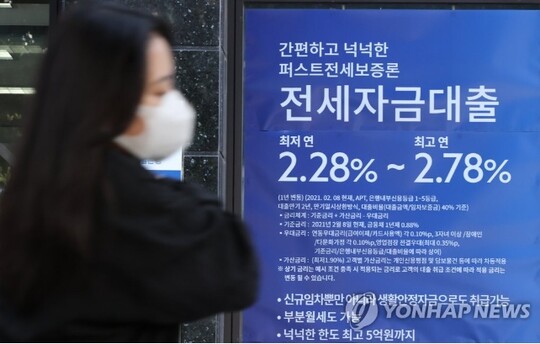 | 2021년 서울 한 은행 앞 전세자금대출 안내판 모습. (사진=연합뉴스 자료사진) |