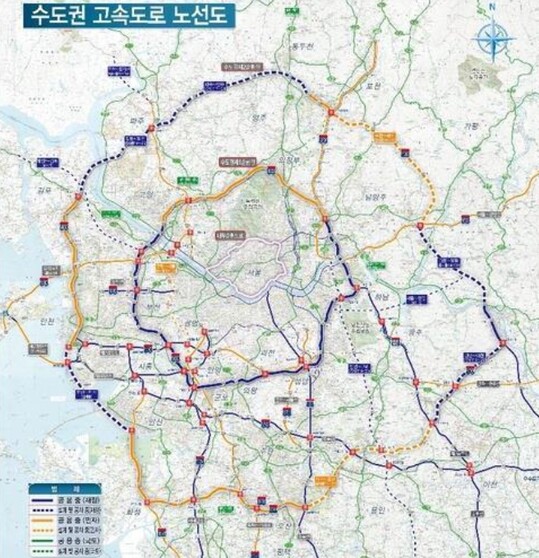 | 수도권 고속도로 노선도. (사진=한국도로공사) |