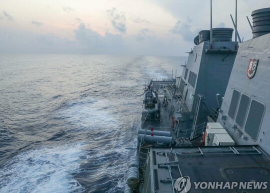 | 10일(현지시간) 미 7함대 소속 알레이버크급 유도 미사일 이지스 구축함 USS 밀리우스(DDG 69)가 남중국해에서 훈련을 실시하고 있다. (사진=연합뉴스) |