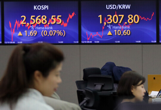 | 코스피가 19일 2,560대 후반에서 강보합세로 거래를 마쳤다. 이날 코스피는 전장보다 1.69포인트(0.07%) 오른 2,568.55로 장을 종료했다. (사진=연합뉴스) |
