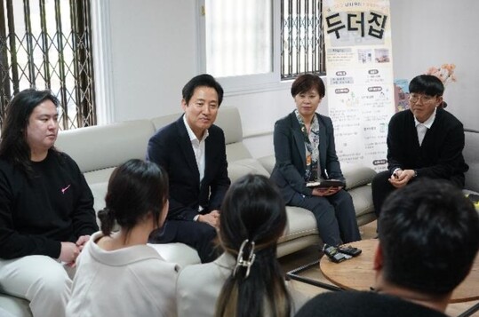 | 고립·은둔 청년들과 간담회 하는 오세훈 시장. (사진=서울시) |