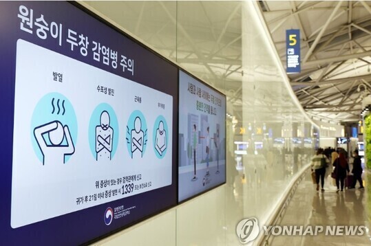 | 공항 엠폭스(원숭이두창) 감염병 주의 안내문. (사진=연합뉴스 자료사진) |