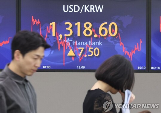 18일 서울 외환시장에서 달러 대비 원화 환율은 전일보다 7.5원 상승한 1318.6원에 마감했다. 환율은 7.4원 오른 1318.5원에 개장한 뒤 1316.5∼1321.0원 사이에서 움직였다. 이날 개장 이후 발표된 중국 경제 지표가 양호하게 나타났으나 환율에 영향은 제한적이었다.