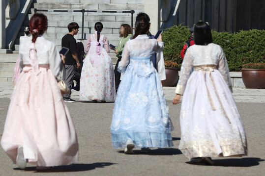 | '2023 한복문화주간'인 16일 오후 서울 종로구 국립민속박물관에서 외국인 관광객들이 한복을 입고 있다. (사진=연합뉴스 자료사진) |