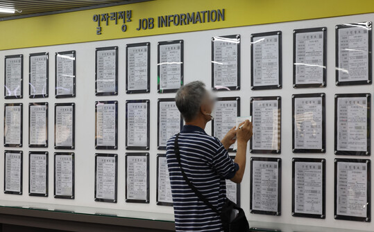 | 서울 마포구 서부고용복지플러스센터에서 한 노일 구직자가 일자리 정보를 보고 있다. (사진=연합뉴스 자료사진) |