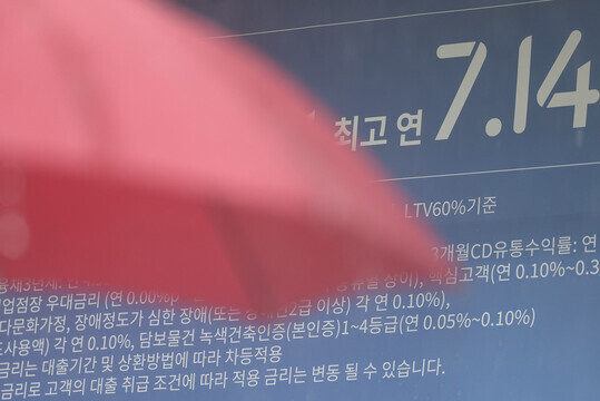| 13일 한국은행이 기준금리를 3.50%로 동결한 가운데 지난달 은행권 주택담보대출이 4개월 연속 늘었다. 은행 가계대출 역시 3개월 연속 증가하며 잔액 기준으로 사상 최대를 기록했다. 서울 시내 한 시중은행 앞에 붙어 있는 대출상품 관련 현수막. (사진=연합뉴스 자료사진) |