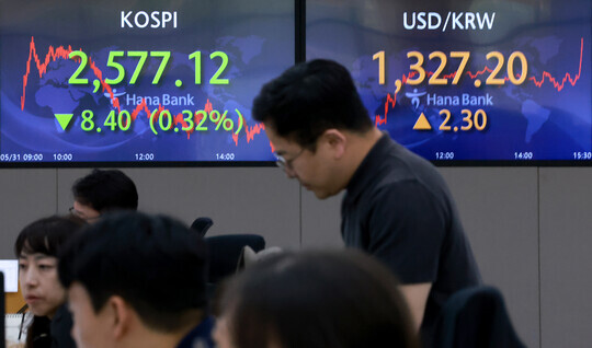 5월의 마지막 날 코스피 지수가 전 거래일 대비 8.40포인트(0.32%) 내린 2577.12에 거래를 마쳤다. 이날 2586.03으로 출발한 지수는 장 중 한때 2596.31까지 치솟아 연중 최고점을 기록했지만 기관의 매도세에 밀려 하락세로 전환되면서 하락 마감했다.